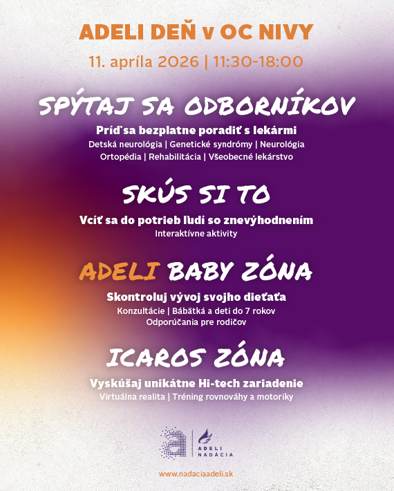 Obľúbený Live ADELI koncept príde tentokrát do nákupného centra Nivy v Bratislave. Prinesieme do terénu odborné poradenstvo, zážitky a podporu pre všetkých, ktorí čelia zdravotnému znevýhodneniu.